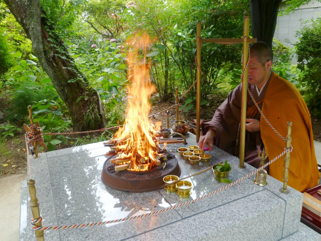 物を焼くと、炎があがります、燃え上がる炎は「天の口」であって仏の智慧の象徴でもあり、その口から供物を食します。